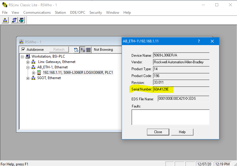 Right click on PLC icon and select “Device Properties” and copy Serial number