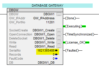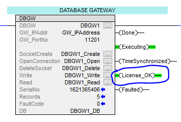 6. Validation, if License number is correct, “License_OK” output on DBGW will turn into green after triggering DBGW the next time.