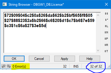 Paste License number into DBGW1_DB.License string tag